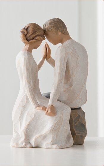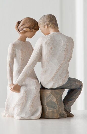 Min udfordring var at forme figuren som en cirkel, så man fra hver vinkel får en ny oplevelse… man ser variationer. Der er ingen korrekt måde at placere figuren på. Der er tre berøringspunkter – deres fingre på begge hænder og toppen af deres hoveder. Jeg kan godt lide den lille smule forbindelse – den prikkende spænding og delte energi, der kommer fra øjeblikke sammen med en ny kærlighed.” -Susan Lordi