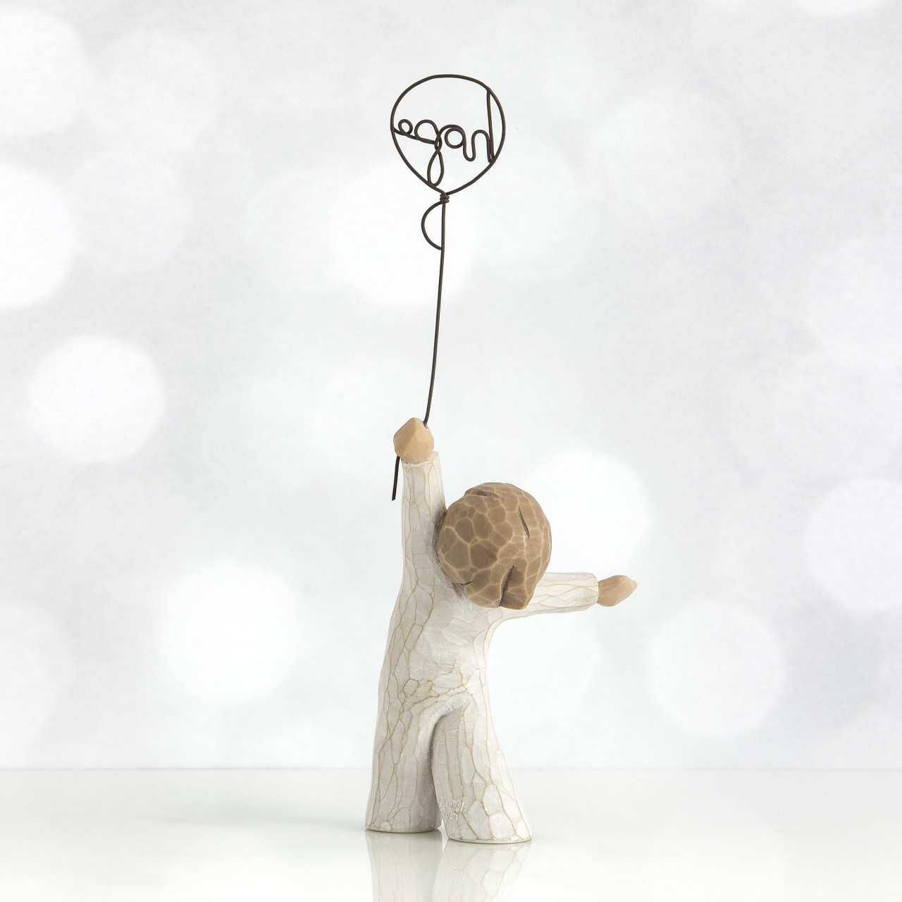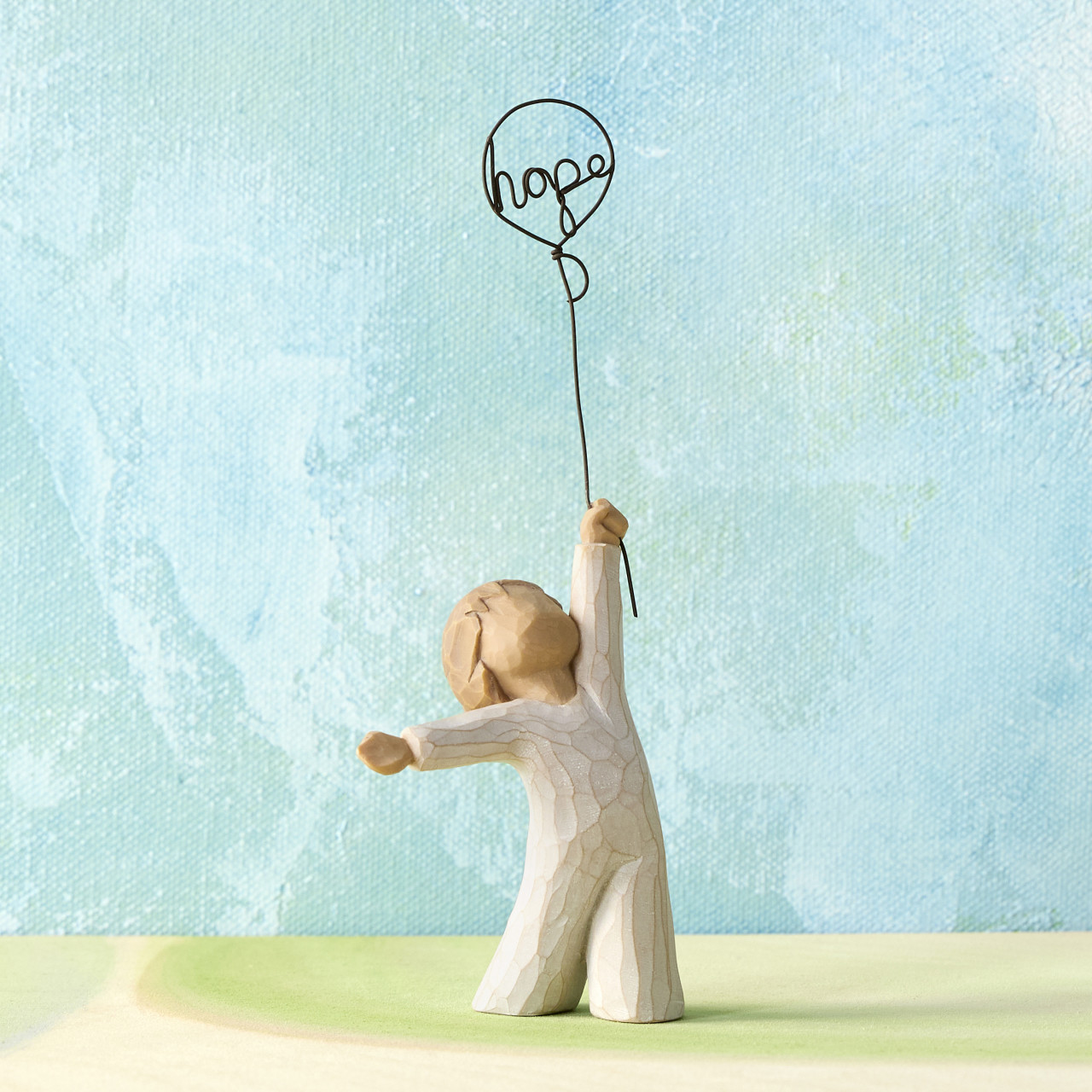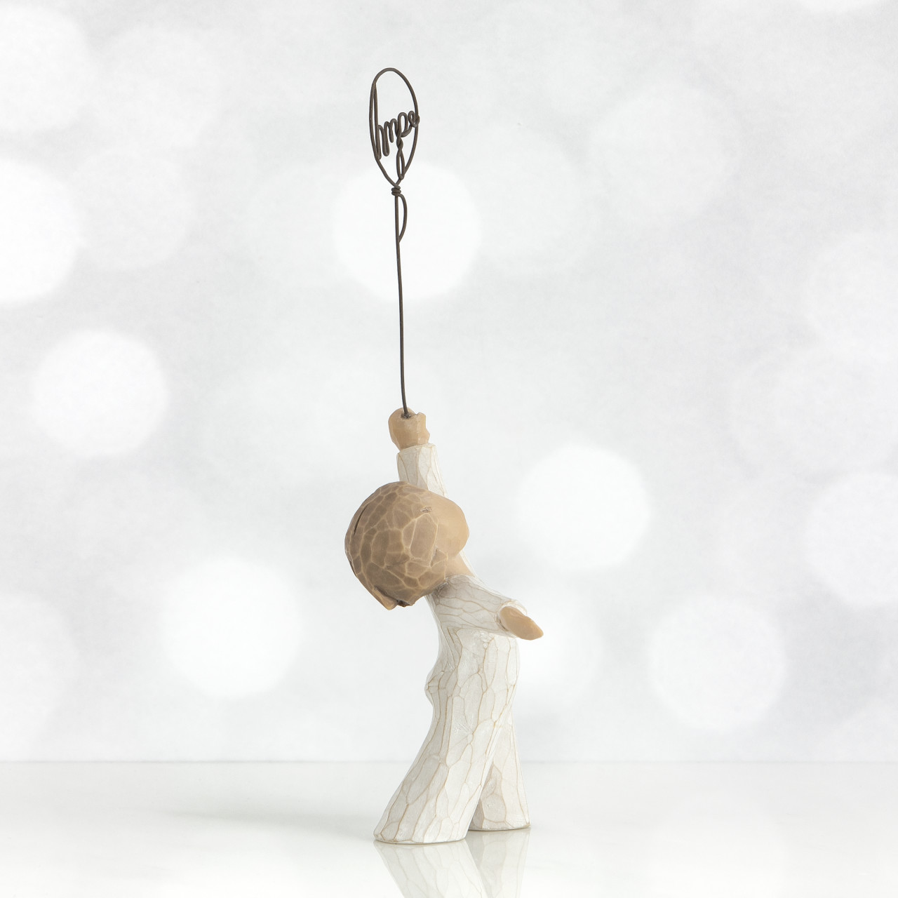 Hope figuren forestiller en lille dreng eller pige, som holder en ballon, hvori der står “hope”. Barnet kigger op på ballonen og ser både ud til at være på nippet til at flyve væk båret af ballonen og til at stå fast med sine ben solidt plantet. Det kan betyde, at håbet løfter os og kan bære os til bedre steder – også selvom vi står fast og tror på os selv og det håb, vi har.